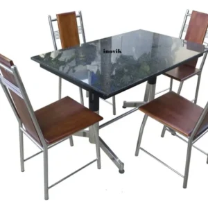 Elegant and durable stainless steel dining set with a spacious rectangular table, perfect for homes and restaurants.